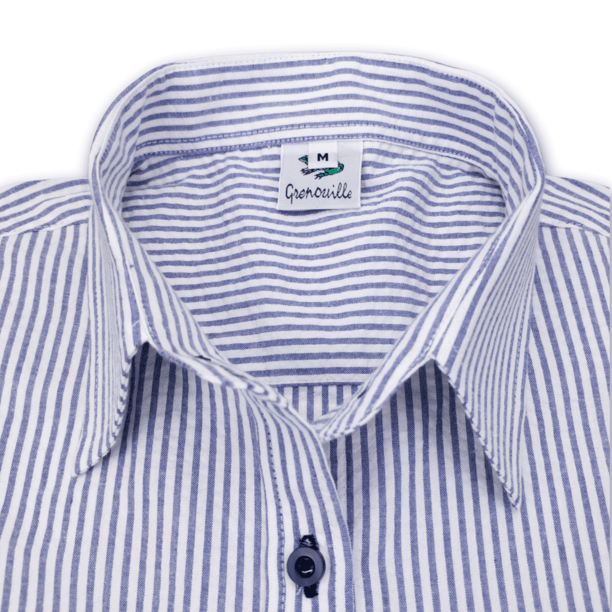 Grenouille Ladies 3/4 Sleeve Dark Blue and White Stripe Seersucker Shirt