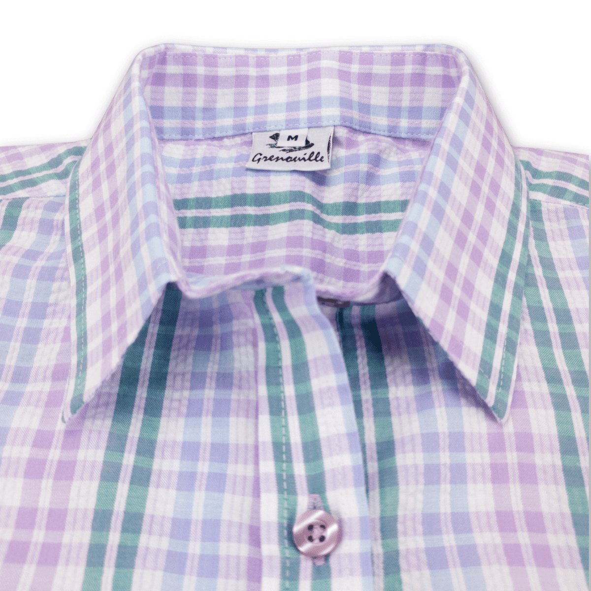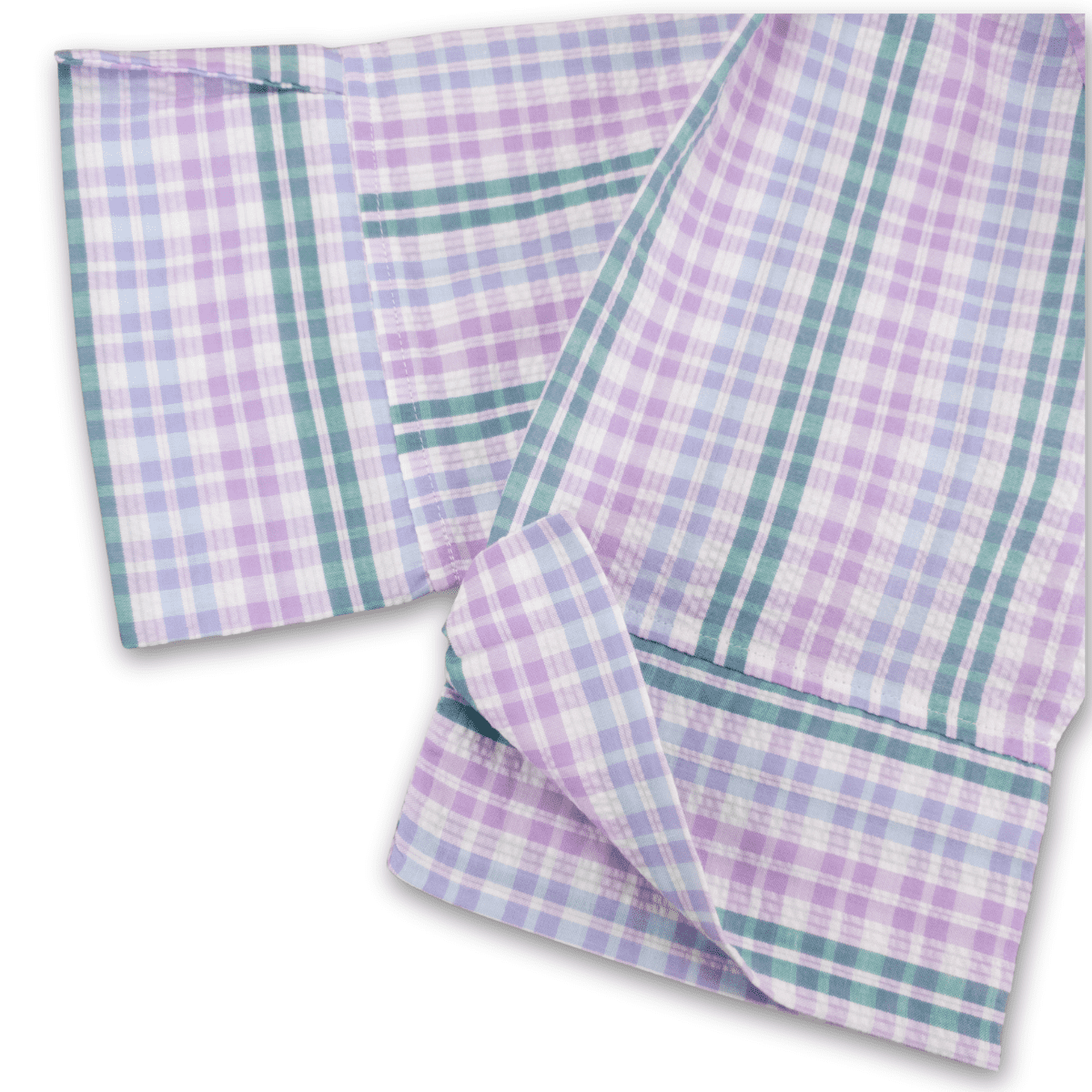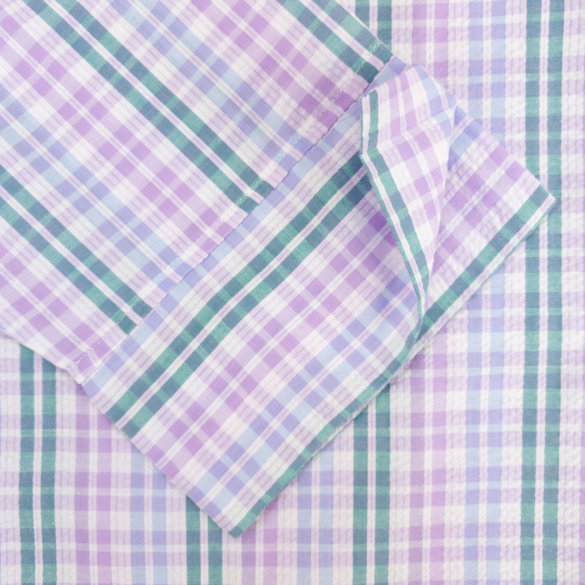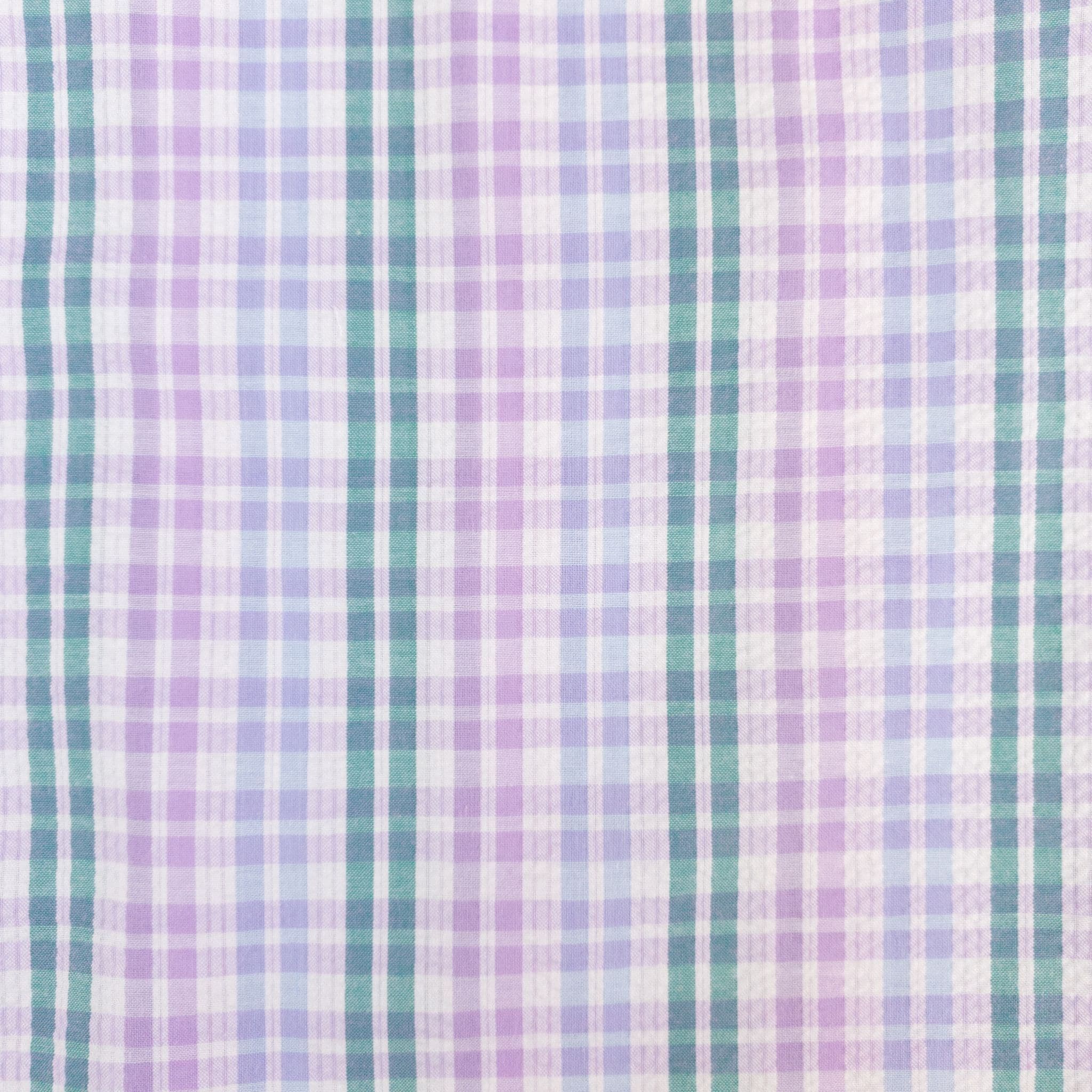 Cool shades of lilac and blue combine with emerald green to create an attractive check seersucker shirt.