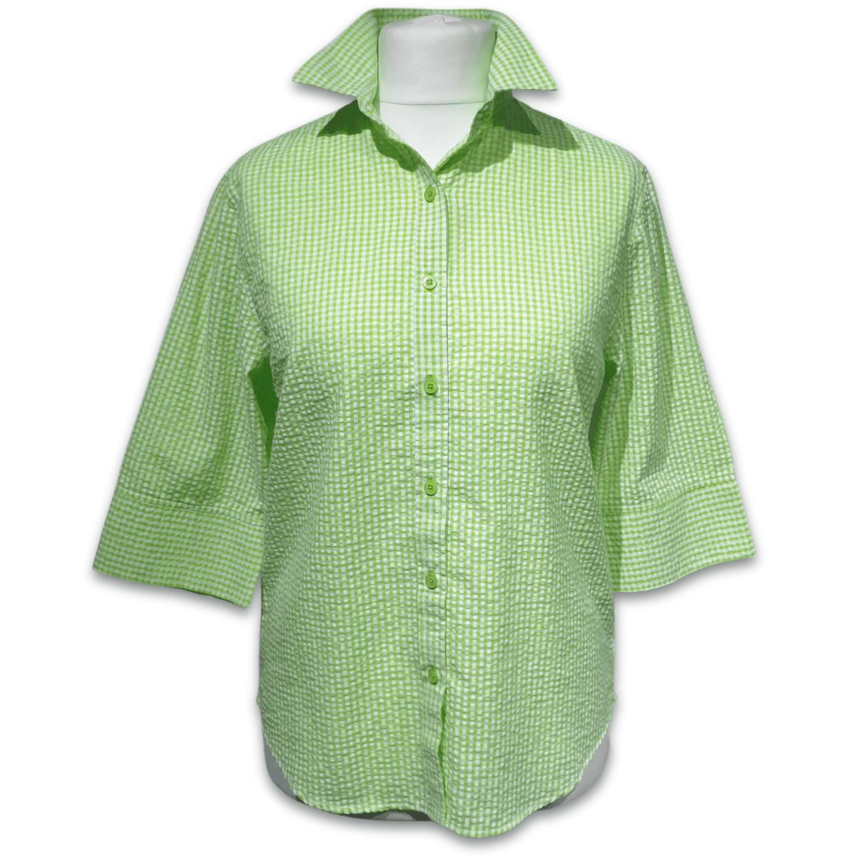 Grenouille Ladies 3/4 Sleeve Lime Green Gingham Check Seersucker Shirt