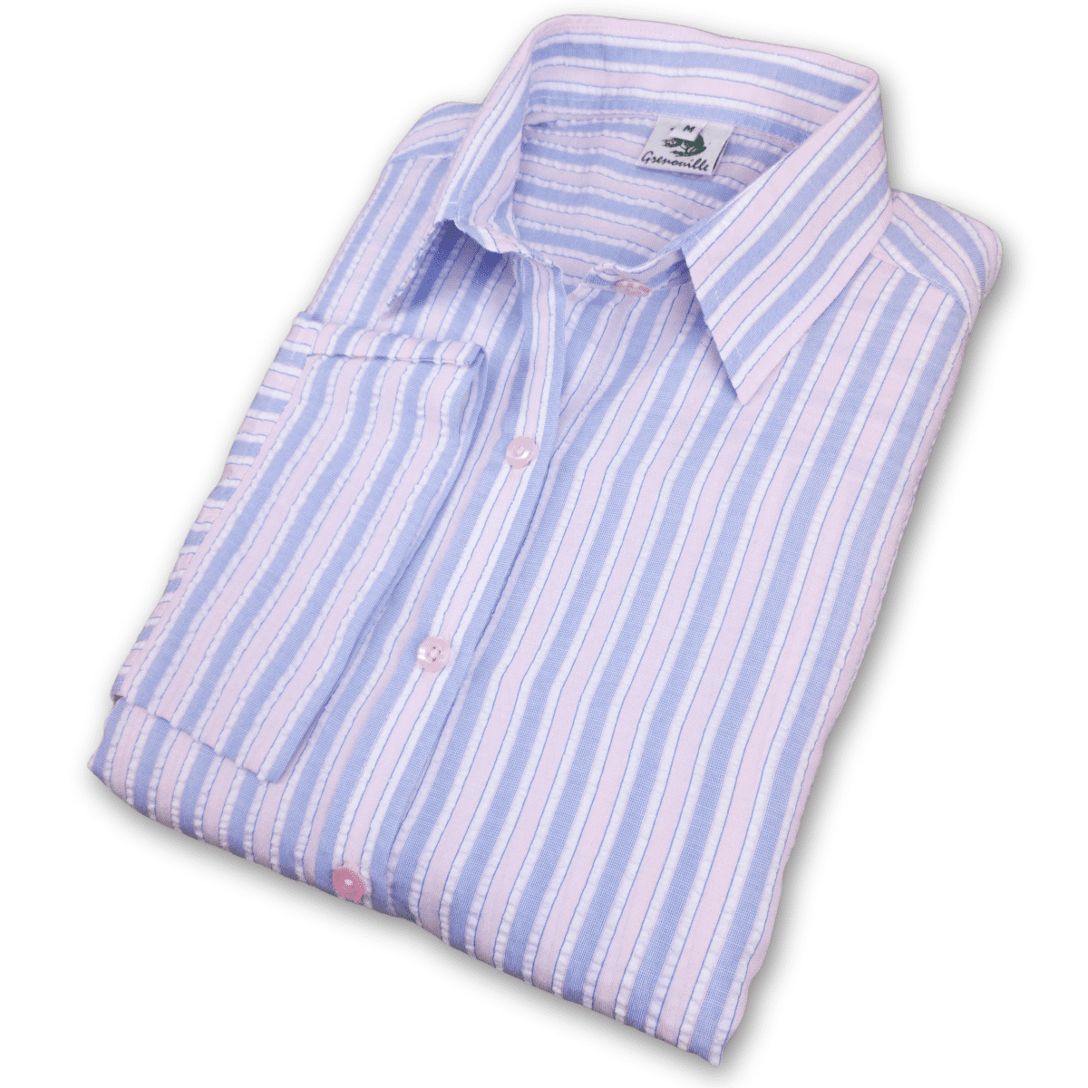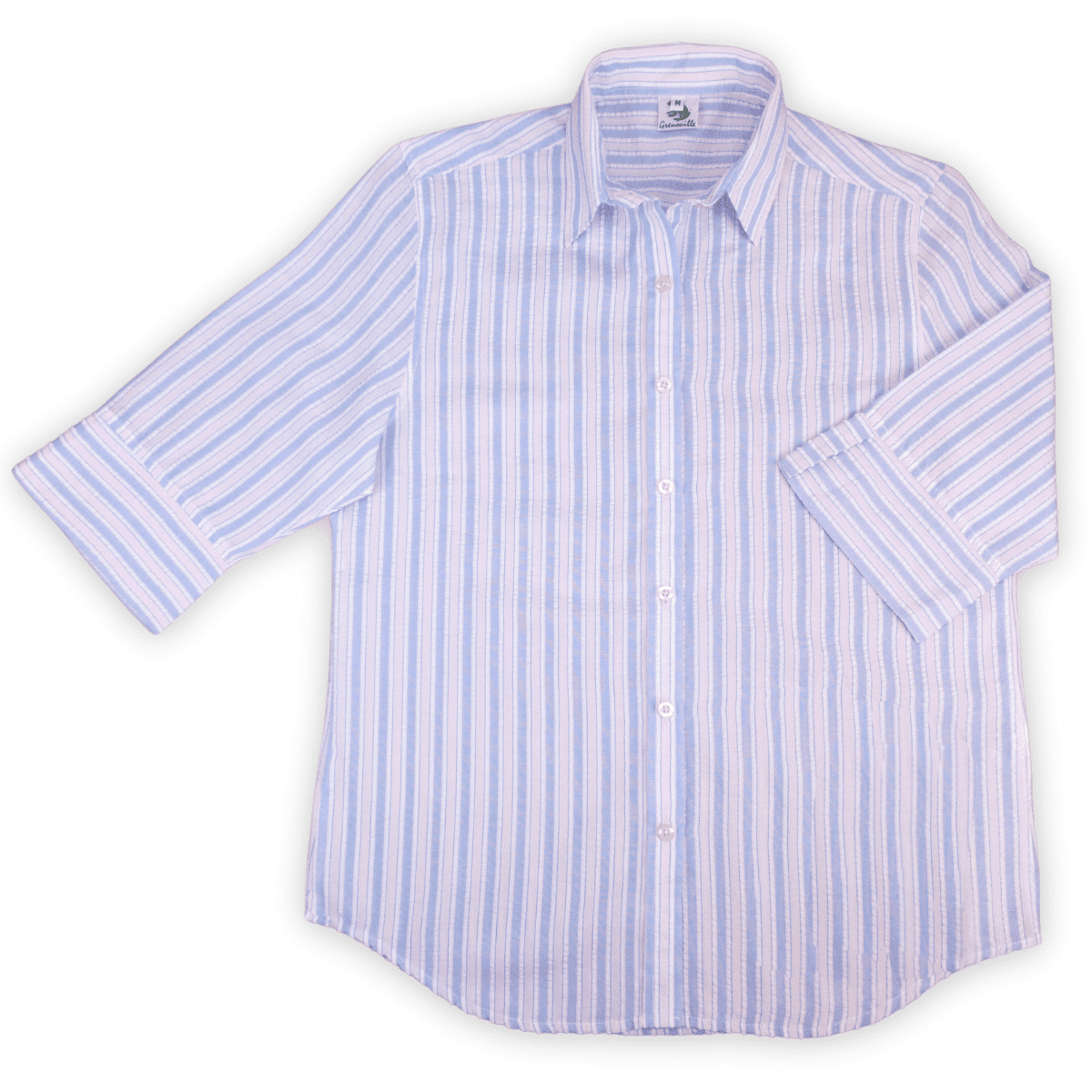 Grenouille Ladies 3/4 Sleeve Pink & Blue Stripe Seersucker Shirt