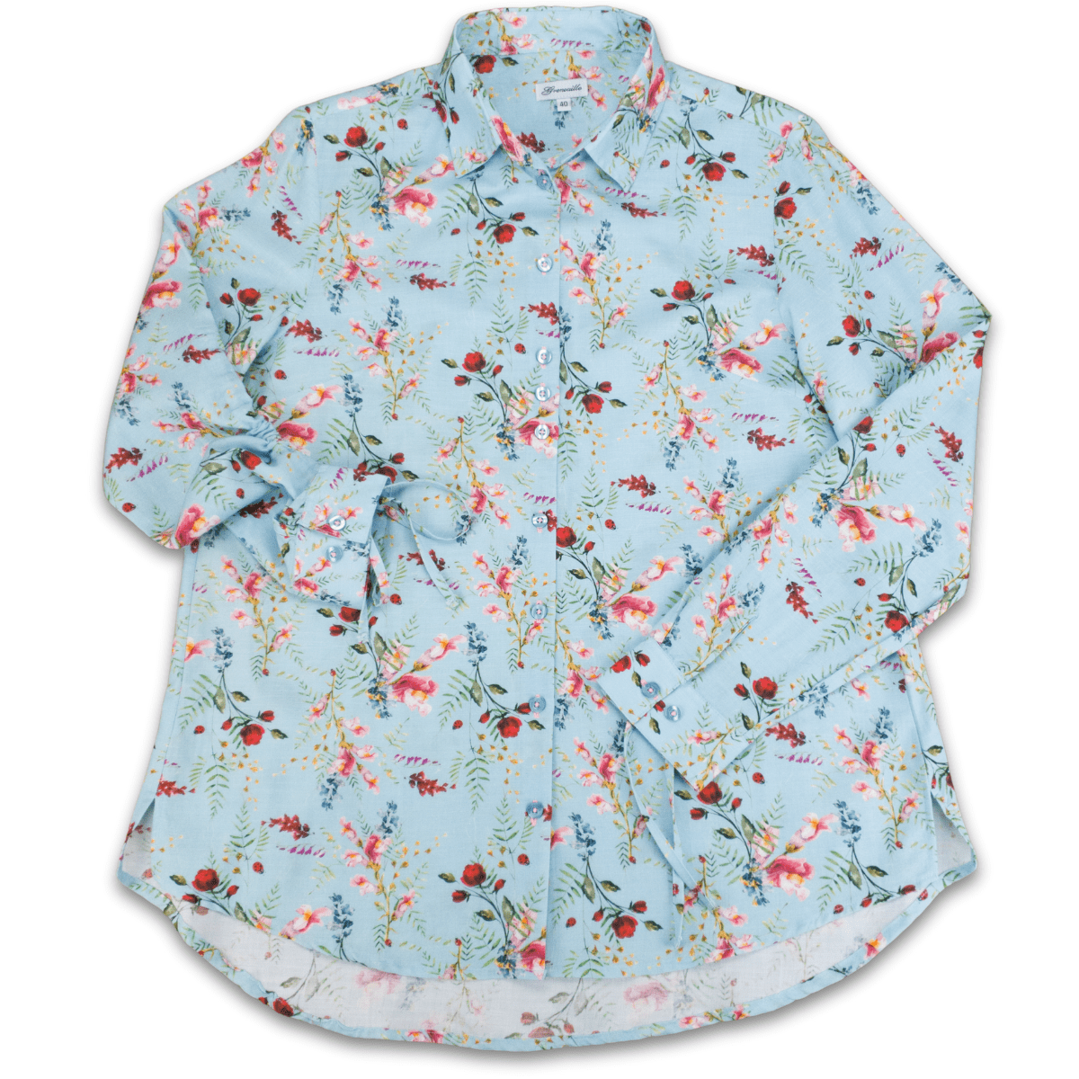 Grenouille Ladies Long Sleeve Blue Floral Blouse
