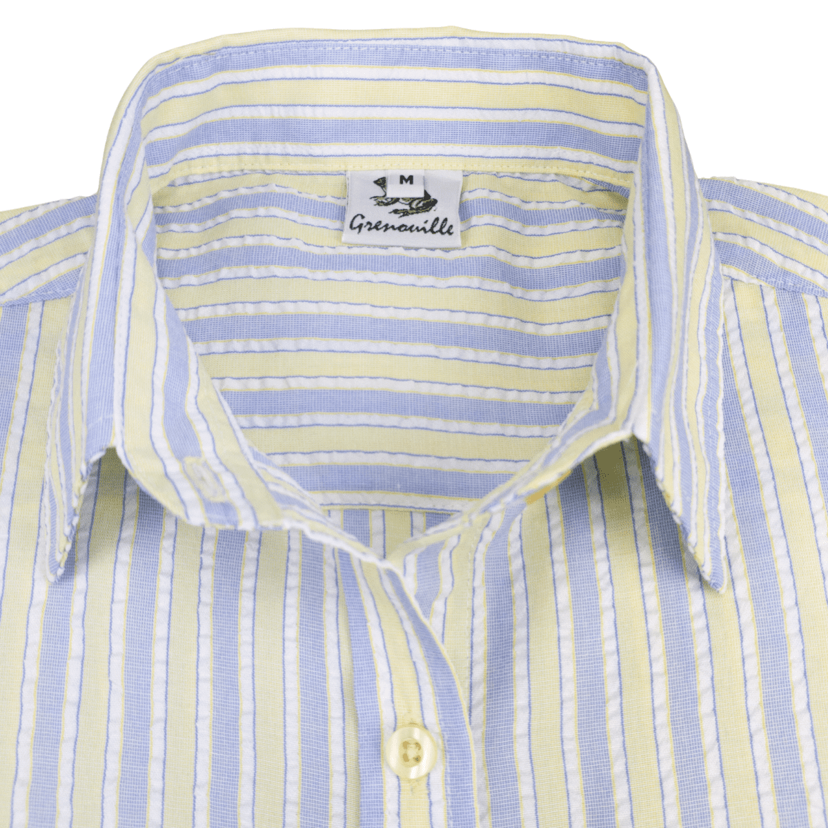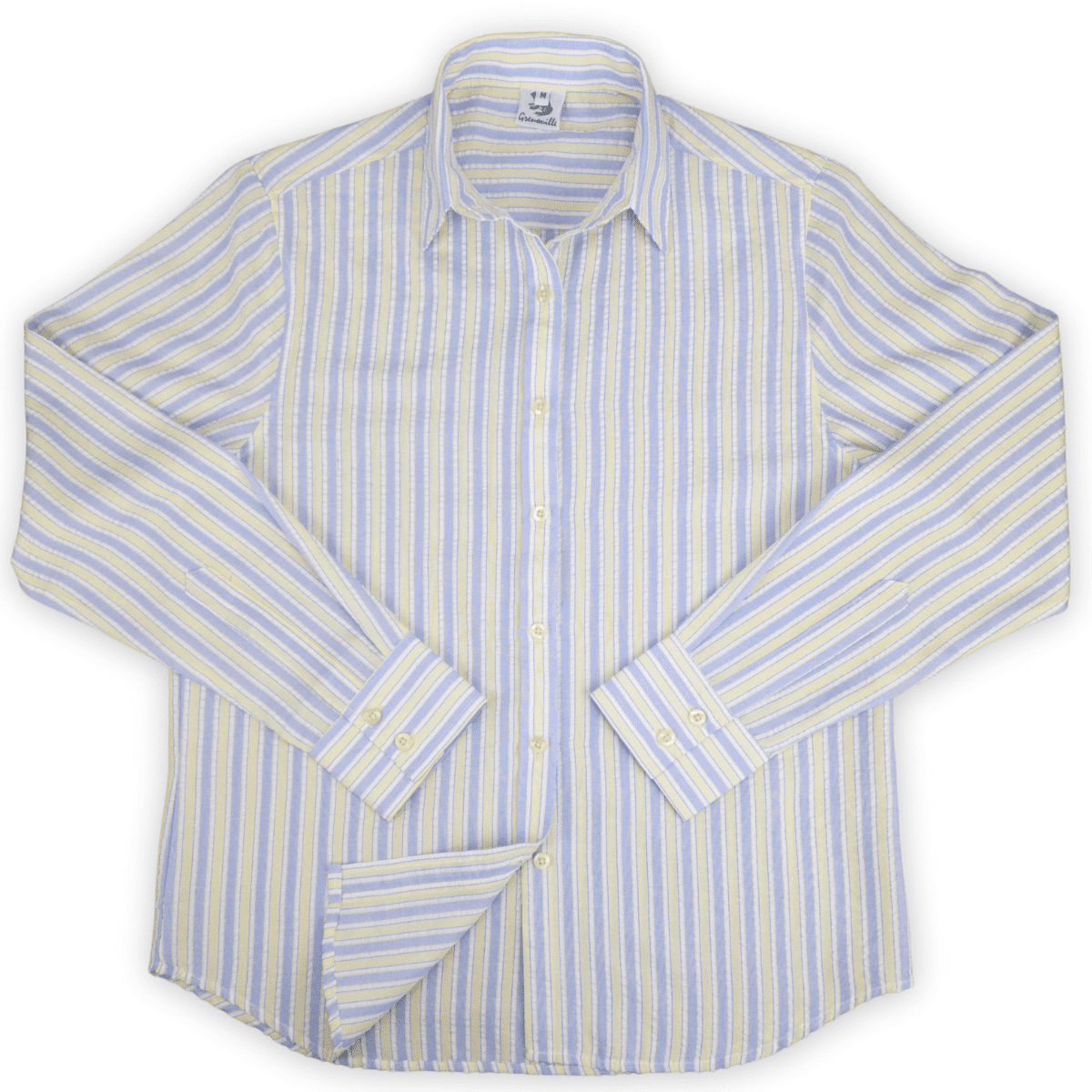 Grenouille Ladies Standard Long Sleeve Yellow & Blue Stripe Seersucker Shirt
