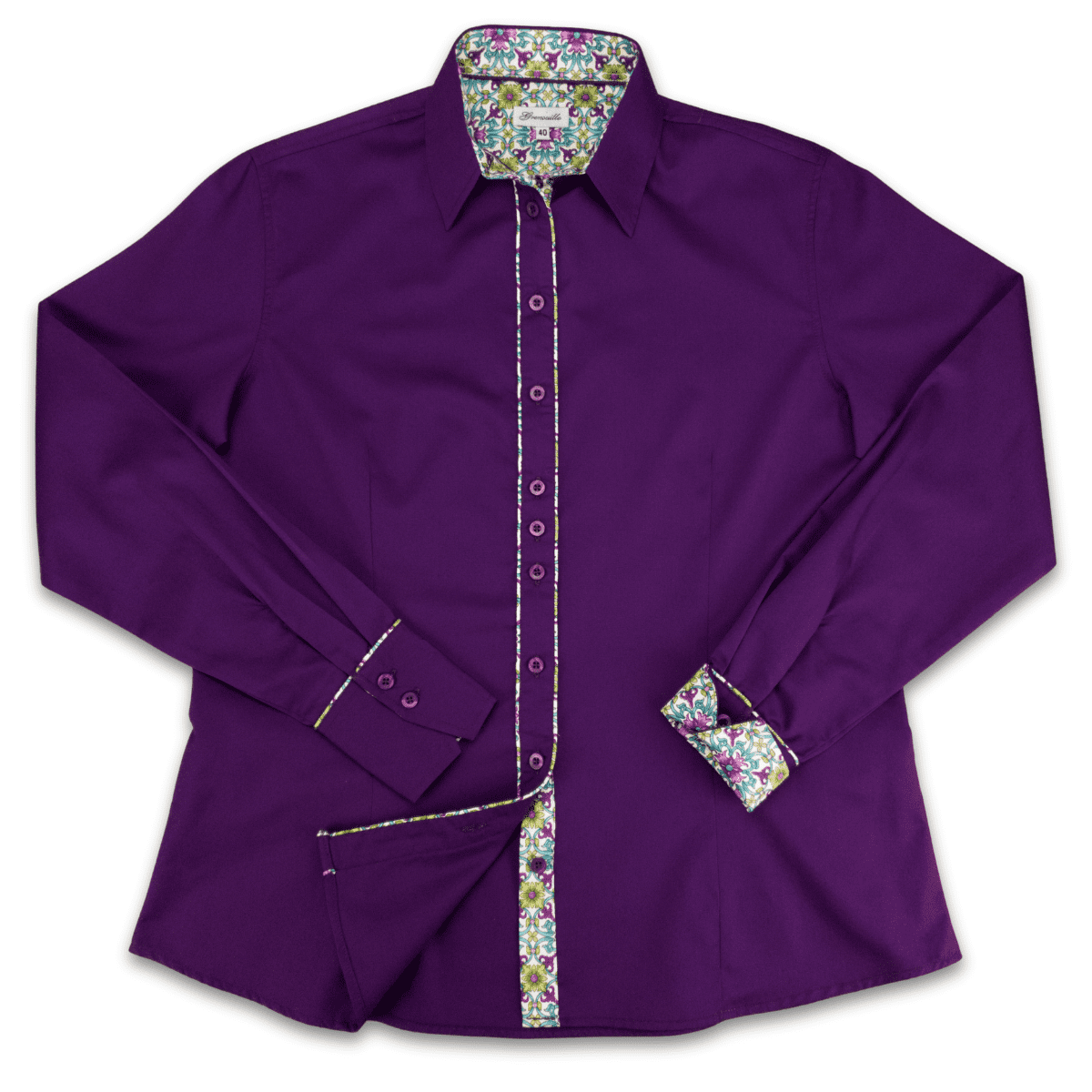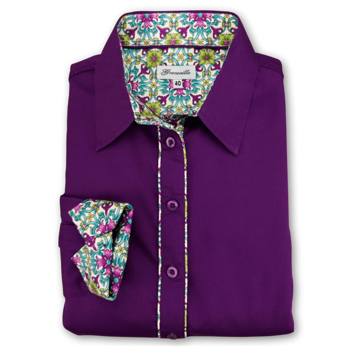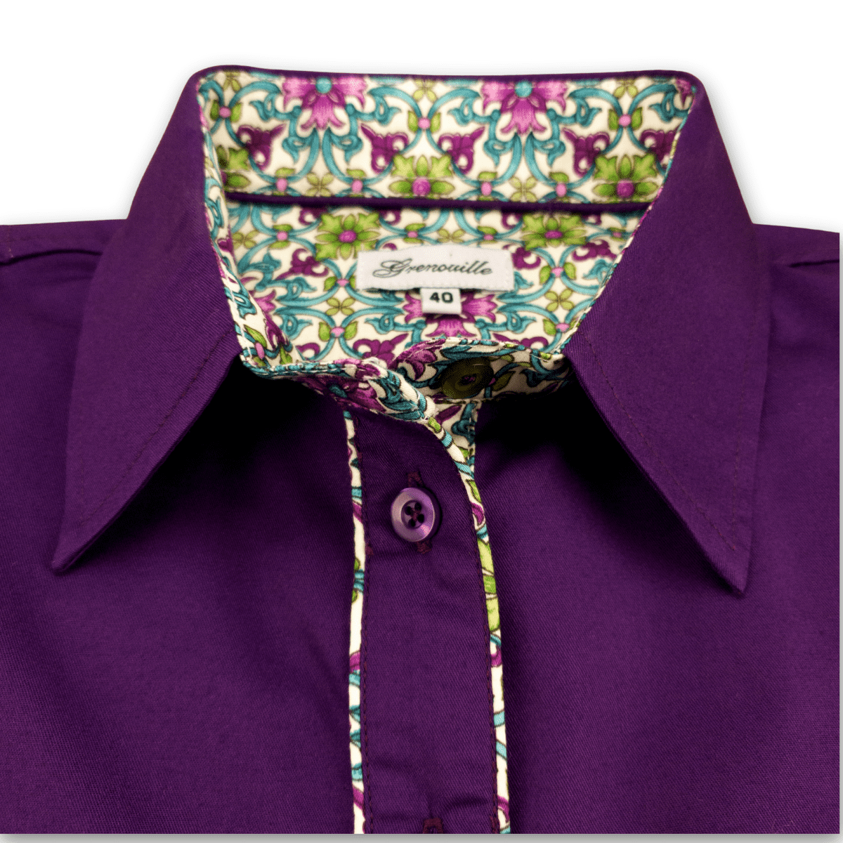 Grenouille Purple Twill Shirt with Turquoise & Cream Accents